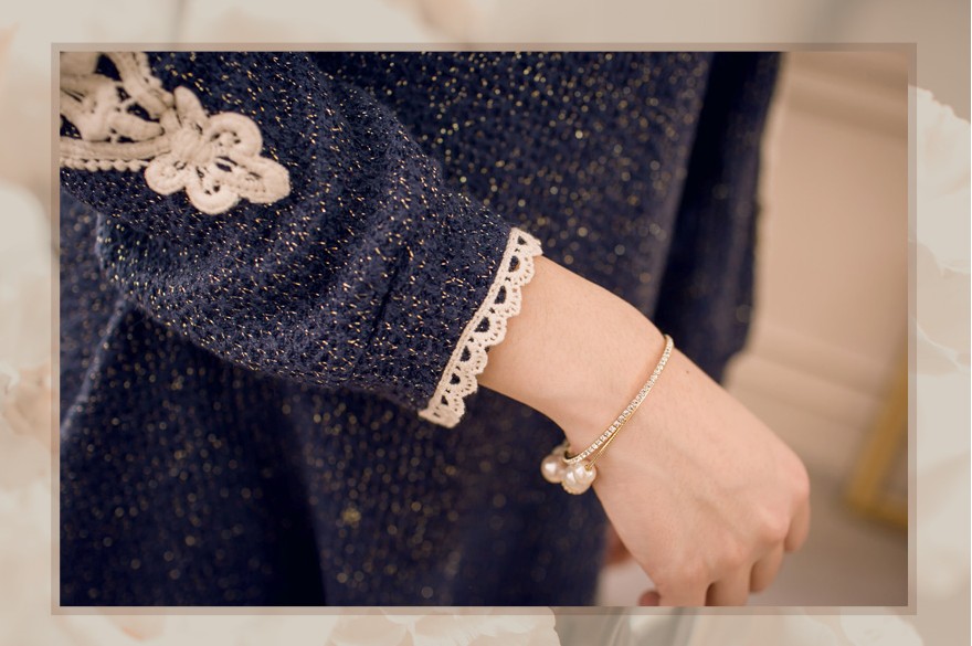 首頁 > 洋裝 > 珍珠鉤花蕾絲金蔥洋裝(2色)