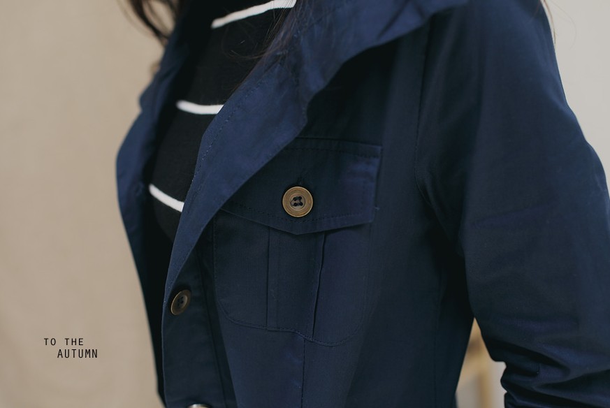 翻領連帽軍裝外套(3色) S 藍